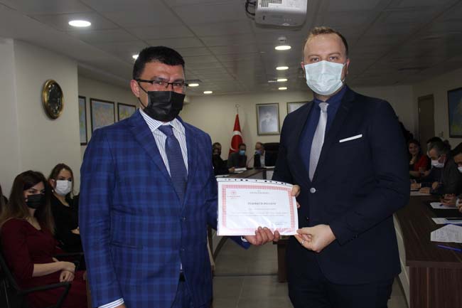 İl Güvenlik ve Acil Durumlar Koordinasyon Merkezi Konferans Salonunda İl genelinde görev yapan Hastane Yöneticilerine ve ilçe sağlık müdürlerine yönelik, Halk Sağlığı Hizmetleri Başkanı Dr. Ömer İnan Güven ile Sağlık Hizmetleri Başkanı Dr. Bilal Cin Başkanlığında "Acil Obstetrik Bakım (AOB) Çekirdek ekip" toplantısı yapıldı. Halk Sağlığı Hizmetleri Başkanlığı Bulaşıcı Olamayan Hastalıklar Birim Sorumlusu Uzman Sevil Çelik’in sunumunun ardından Hastane Yöneticilerine Sağlık Hizmetleri Başkanı Dr. Bilal Cin, Halk Sağlığı Hizmetleri Başkanı Dr. Ömer İnan Güven, Halk Sağlığı Hizmetleri Başkan Yardımcısı Dr. Sevilen Köktürk ve Kamu Hastaneleri Hizmetleri Başkan Yardımcısı Hasret Birinci tarafından Hastane Yöneticilerine Sertifikaları verildi.