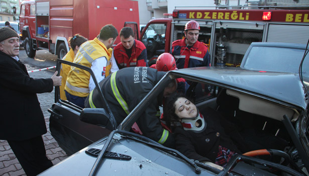 birlikte araçtan çıkarılan Ayşe Ünlü ambulansa alınarak, Karadeniz Ereğli Devlet Hastanesi'ne kaldırıldı.