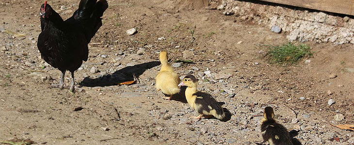 Alaplı'da bir alabalık tesisinde yaklaşık bir ay önce anneleri tilki tarafından telef edilen 3 yaban ördeği yavrusuna tavuk annelik ediyor. Alabalık Tesisi Sahibi Nurettin Keskin, tesislerinde alabalığın yanı sıra mini bir hayvanat bahçesi olduğunu söyledi. Tesisin doğa ile iç içe bir ortamda olması dolayısıyla zaman zaman tavuk ve ördeklere tilki ve çakal gibi hayvanlar saldırdığını belirten Keskin, bir ay önce kuluçkaya yatan bir yaban ördeğinin tilki tarafından telef olduğunu söyledi. Yaban ördeği yumurtalarını bir süs tavuğunun altına koyduklarını, çıkan yaban ördeği yavrularına tavuğunu sahip çıktığını belirten Keskin, "Alabalık tesislerimizde aynı zamanda bir mini hayvanat bahçesi kurduk. Tavuklarımız, yaban ördeklerimiz, tavus kuşumuz, evcil hayvanlarımız mevcut, doğayla iç içe yaşıyoruz. Doğayla iç içe yaşadığımız için tavuklarımıza ve ördeklerimize tilki ve çakal gibi hayvanlar saldırabiliyor. Bir süre önce kuluçkaya yatan bir yaban ördeğimizi gece bir tilki almış ve telef etmiş, bizde yumurtalarını bir süs tavuğunun altına koyduk, bir süre yumurtalardan yaban ördek yavruları çıktı. Tavuğumuzda onlara sahip çıktı. Ördek olmalarına rağmen onlara bakıyor, su kanallarından uzak tutmaya çalışıyor. Ördek yuvaları su kanallarına girdiği zaman panikliyor, onları kollamaya çalışıyor. Onlara çok iyi bir annelik yapıyor. Artık alıştı onlar suya girdiğinde onları sakin bir şekilde bekliyor ve zamanı gelince de sudan çıkartıp onlarla birlikte kümesin yolunu tutuyor. Süs tavuğumuz bir anlamda ördek olmalarına rağmen onlara tam bir annelik yapıyor, basından seyrediyoruz bazı anneler çocuklarını terk edip atıyor. Ama tavuk da olsa bu ördek yavrularına annelik duyguları sahip çıkıyor ve kolluyor. Ördek yavrusu suyla özdeşleştiği için tavuğun dikkati onların üzerinde o kadar onlara bir şey olacak diye korkuyor ki ördek olsa suya atlayacak o kadar derecede onları yavrusu olarak benimsemiş" dedi.