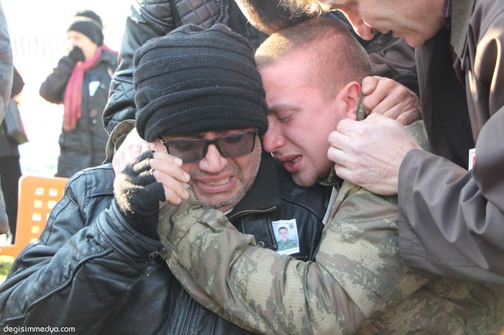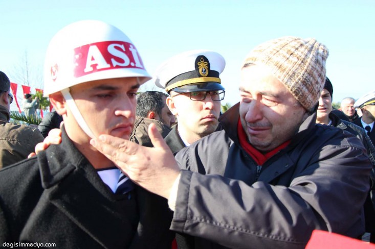 Tören alanında namaz saatinin beklendiği sırada şehidin naaşı başında nöbet tutan askerler göz yaşlarını tutamadı. Bu durumu gören şehidin yakınları askerlerin yanına gelerek, akan göz yaşarını sildi. Askerleri seven şehidimizin yakınları da göz yaşlarına hakim olmadı.