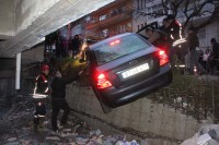 APARTMAN BOŞLUĞUNA UÇAN OTOMOBİLİN SÜRÜCÜSÜNÜ İTFAİYE KURTARDI