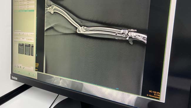 Ardından hemen ameliyata alınan zeytin isimli kedinin ön sol ayağında ki kırığa plak uygulaması ile sabitlendi. Ameliyattan çıkan zeytin isimli kedi yapılan son tetkiklerin ardından taburcu edildi.