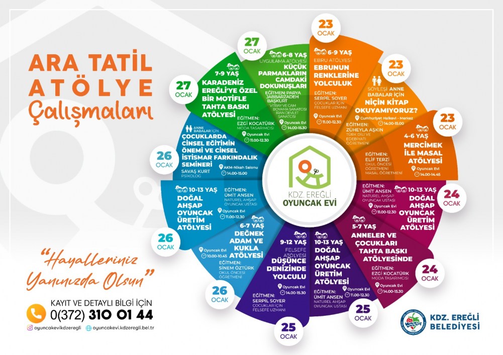 Oyuncak Evi Atölye çalışmalarına katılmak isteyen veliler 0372 310 01 44 numaralı telefondan ön kayıt yaptırabilirler.