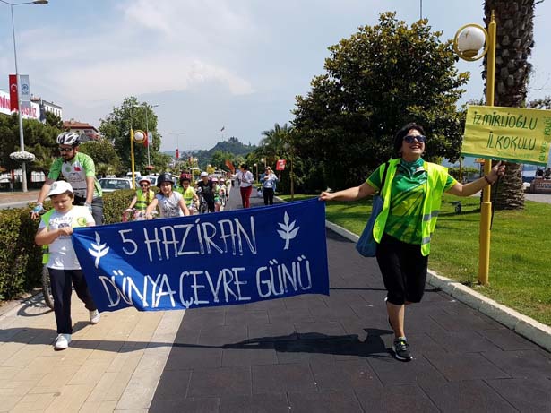 Kutlama etkinliklerine Ruhi Cöbekoğlu üst geçidinden başlayan öğrenciler ilk olarak Karadeniz Ereğli Bisiklet Sevenler Derneği'nden Kenan Uzun'dan, güvenli bisiklet sürücü eğitimi aldılar. Daha sonra Çınaraltı mevkiine kadar bisikletleriyle giden Çevre Polisi öğrenciler hazırladıkları çevre konulu pankartları taşıyarak, "Arabadan in bisiklete bin" sloganı attılar. Sahilde bulunan bir ağaca salıncak kuran öğrenciler, "gölgesinde oturacağımız, dallarında sallanacağımız ağaçlarımız olsun" mesajı veren bir kamu spotu hazırladılar. İzmirlioğlu İlkokulu öğrencilerinin Dünya Çevre Günü kutlama etkinliklerine öğrenci velileri de destek verdi.