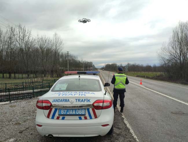Zonguldak İl Jandarma Komutanlığınca, meydana gelebilecek trafik kazalarını önlemek ve sürücülerde yakalanma duygusunu üst düzeye çıkarabilmek için sorumluluk alanımızda bulunan karayollarında drone ile denetim ve kontrollere devam edilecektir. Sorumluluk sahamızda karayolu ağını kullanan tüm yol kullanıcılarının mağdur olmamaları ve trafik kurallarına riayet etmeleri temennimizdir.” denildi