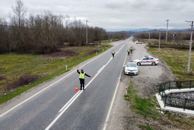 “Zonguldak İl Jandarma Komutanlığı Trafik Timlerince; 2021-2030 Karayolu Trafik Güvenliği Stratejisi Belgesi’nde belirtilen Güvenli Sistem Yaklaşımı çerçevesinde, seyir halinde cep telefonu kullanımı nedeni ile oluşabilecek kazaların azaltılması ve emniyet kemeri takılmaması nedeni ile meydana gelen ölümlerin engellenmesi amacıyla, yol kullanıcılarında “Algılanan Yakalanma Riski Duygusunun” sürekli ve üst düzeyde tutulabilmesi için Drone ile denetimler icra edilerek bilgilendirmeler yapılmıştır.