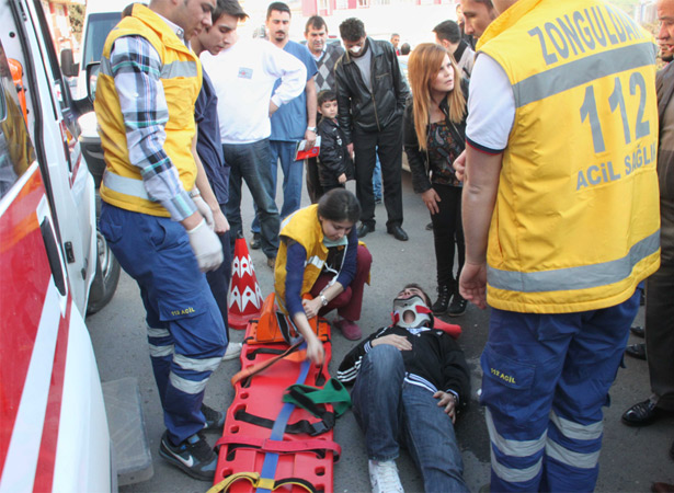 gelen sağlık ekipleri yaralıya müdahale etti. Çevredeki vatandaşlar, araç