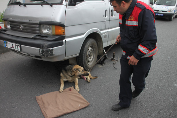 ARACIN ALTINDA SIKIŞAN VE 30 METRE SÜRÜKLENEN KÖPEĞİ, İTFAİYE KURTARDI