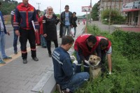 Zonguldak'ın Ereğli ilçesinde minibüsün çarptığı köpek, aracın altında yaklaşık 30 metre sürüklendi. Aracın ön sol lastiğinde sıkışan köpek itfaiye ekipleri tarafından kurtarılırken, belediye veteriner işleri müdürlüğü ekipleri tarafından tedavisi yapılmak üzere kliniğe götürüldü.
