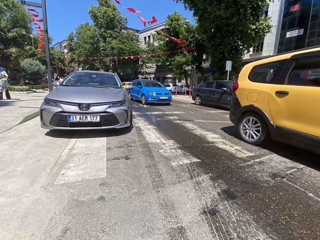 Zonguldak’ta Gazipaşa Caddesinde bir otomobilin deposundan sızan mazot yola dökülünce sürücüler zor anlar yaşadı.