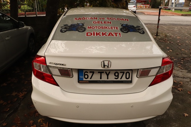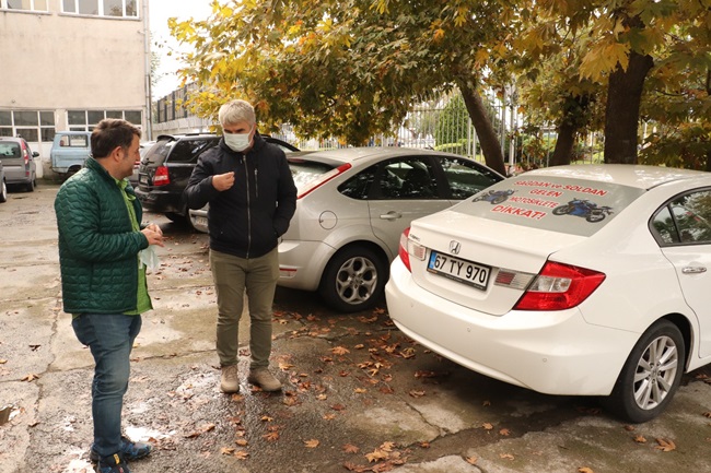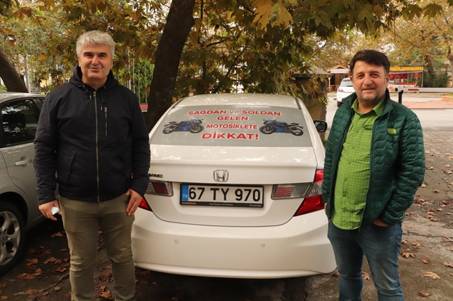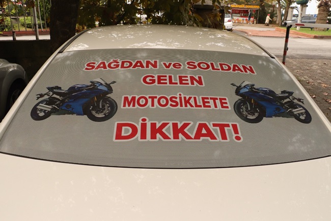 “Önce herkesi kurallara uymaya davet ediyorum. Ufak bir dikkatsizlik sonucu bir kaza başımıza geldi. Kazada Ahmet Beyde herhangi bir sıkıntı olmadı. Ondan dolayı çok mutluyum. Sosyal bir farkındalık yaratmak için bu yazıyı arabaya asmaya karar verdim. Belli bir süre arabanın arkasında kalacak. Ondan sonra insanların dikkatini çeker. Böylelikle birkaç kazayı önleyebilirsek o bizim için çok mutluluk verici olur. Görenler ilk önce şaşırıyor. Ancak farkındalık yarattığı belli oluyor. İlgi çekti. Yazıyı görenler ilk önce neden yaptırdığımı soruyorlar. Bende başımıza küçük bir kaza geldiğini, motorcuların trafikte çok sıkıntı yaşadıklarını ve motorcularında trafik kurallarına uymaları gerektiğini söylüyorum. Kısacası bu yaptığımız farkındalık yaratma anlamında çok etkili oldu" dedi.