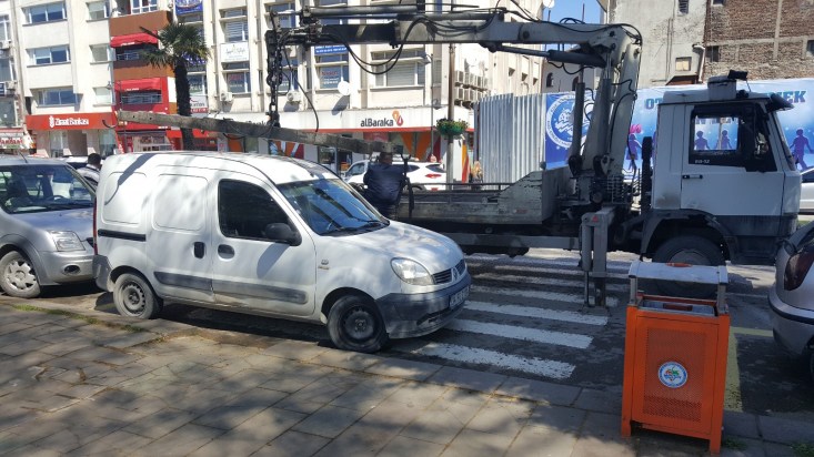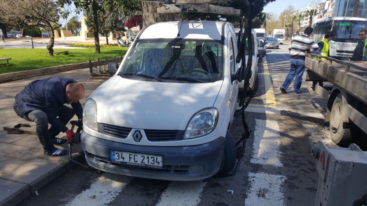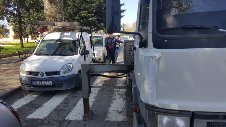 ve ikinci sıra park eden araçları çekici ile kaldırıyor. Yetkililer araç