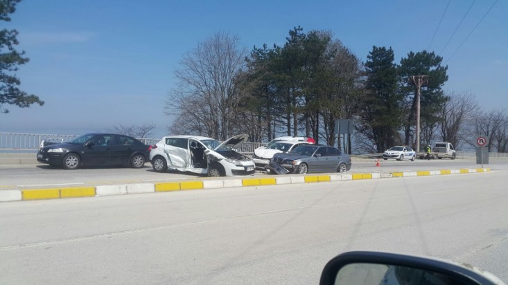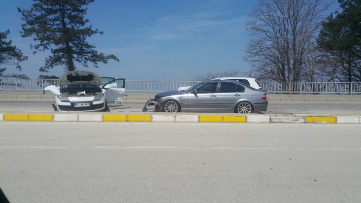 Düzce'nin Akçakoca ilçesinde 3 aracın karıştığı kaza yolu trafiğe kapattı. Araçlarda büyük hasar meydana gelen kazada yaralanan olmadı.