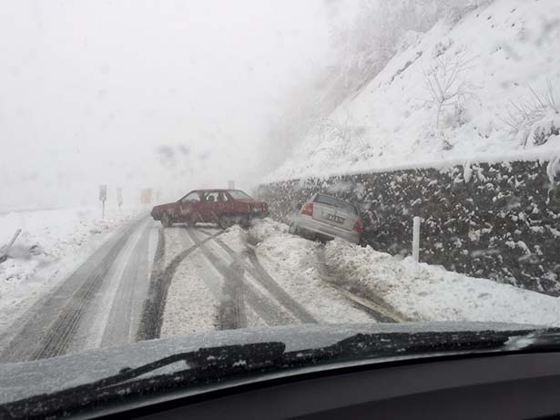 Zonguldak-İstanbul karayolunda etkili olan kar yağışı nedeniyle ulaşımda büyük aksamalar yaşandı. Yola hazırlıksız çıkan sürücülerden birçoğu kayarak araçlarını su kanalına yatırdı.