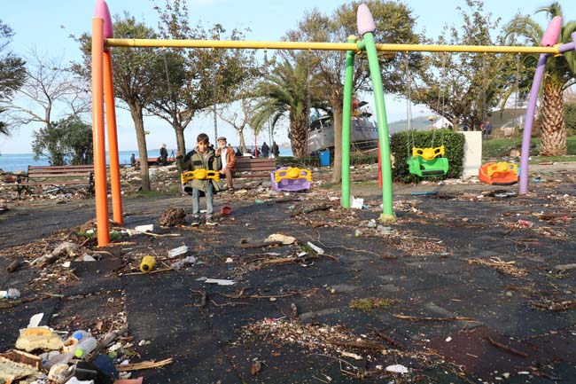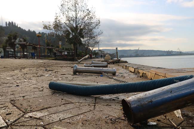 Öte yandan Ereğli Belediyesi ekipleri, büyük hasar gören ve adeta bir çöplüğe dönüşen sahilde temizlik çalışmalarına başladı. Sahilde yaşanan felaketin izlerini silerek eski haline dönmesi için titiz bir çalışma yürütülüyor.
