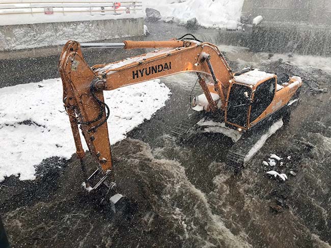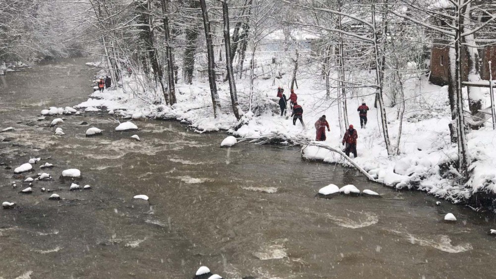 Düzce'de 4 Şubat'ta dereye yuvarlanan kepçenin operatörünü arama çalışmaları altıncı gününde yoğun kar yağışı ve 1 metre karın altında devam ediyor.