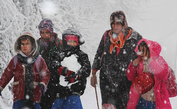 Yağan karın sevincini yaşayan öğrenciler, kurtarma ekiplerinin arazili