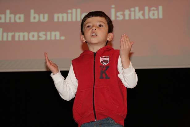 Yarışmanın Erdemir Kültür Merkezi büyük salonunda gerçekleştirilen ilkokul bölümünde öğrenciler gerek giydikleri kıyafet, gerek İstiklal Marşı'nı okumalarındaki coşkularıyla göz doldurdu. Öğrencilerin performansı dinleyiciler tarafından alkışlarla kutlandı.