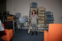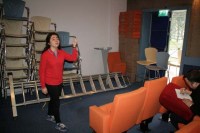 Kullanımda olmayan masa, sandalye, ses ve ışık sistemlerinin depolandığı gözlenen küçük salonun havalandırmasının ise açık havaya açılan kapıya konulan bir sandalye ile sağlandığı gözlendi.