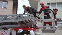 ARKADAŞININ EVİNDE KİLİTLİ KALDI, İTFAİYE TARAFINDAN KURTARILDI