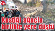 Kestiği ağaçla birlikte yere düştü