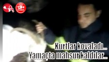 Kurtlar kovaladı... Yamaçta mahsur kaldılar...