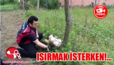 Isırmak isterken tellerden kurtuldu...