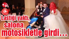Lastiği yaktı, salona motosikletle girdi...