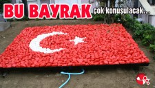 ÇAKIL TAŞINDAN YAPILAN BAYRAĞA BÜYÜK İLGİ...