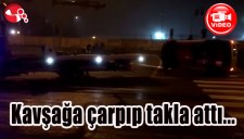 KAVŞAĞA ÇARPIP TAKLA ATTI...