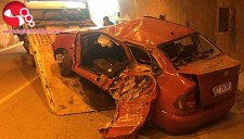 ARABA PARÇALANDI ŞOFÖR ZOR KURTARILDI...