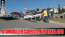 OTOMOBİLLER ÇARPIŞTI, BİRİ TAKLA ATTI