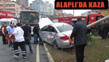 Alaplı'da bir otobüsün otomobille çarpışması sonucu 3 kişi yaralandı.