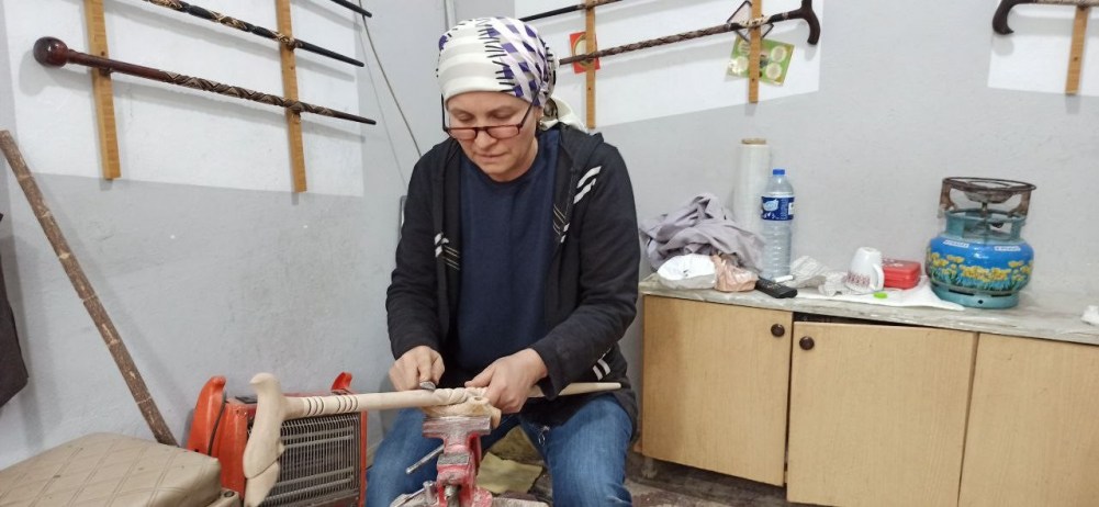 Devrek’te yaşayan Fatma Ayvacı, bir yandan evinin işlerini yürütürken diğer yandan atölyede kızılcık ağacına şekil veriyor. 2003 yılından bu yana eşine yardım ederken mesleği öğrenen ve ustalaşan Ayvacı, kadın elinin değdiği bastonların inceliklerini anlattı.
