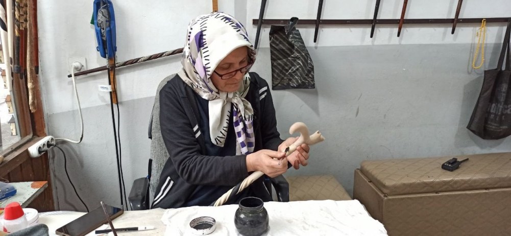 Kızılcık ağacından kadın ustaların elinde hayat bulan bastonlar, dünyanın dört bir yanına devlet hediyesi olarak gönderiliyor.