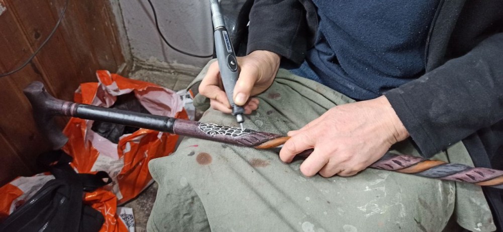 Kızılcık dallarının atölyede uzun işlemlerden geçtiğini ifade eden Ayvacı, makineden geçirilen ağaçların daha sonra el işçiliğiyle sanat eserine dönüştüğünü söyledi. Ayvacı, bastonların üzerine yılan, kartal ve çeşitli geleneksel motiflerin büyük bir sabırla işlendiğini vurguladı.