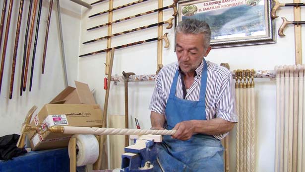 Horoz, baston için kullanılacak olan ağacın fiziki durumuna göre üzerine yılan, baklava gibi çeşitli motifler işlediklerini ifade etti. Horoz, Kanada, Finlandiya ve Almanya gibi ülkelere baston ihraç ettiklerini de hatırlatarak şöyle dedi: