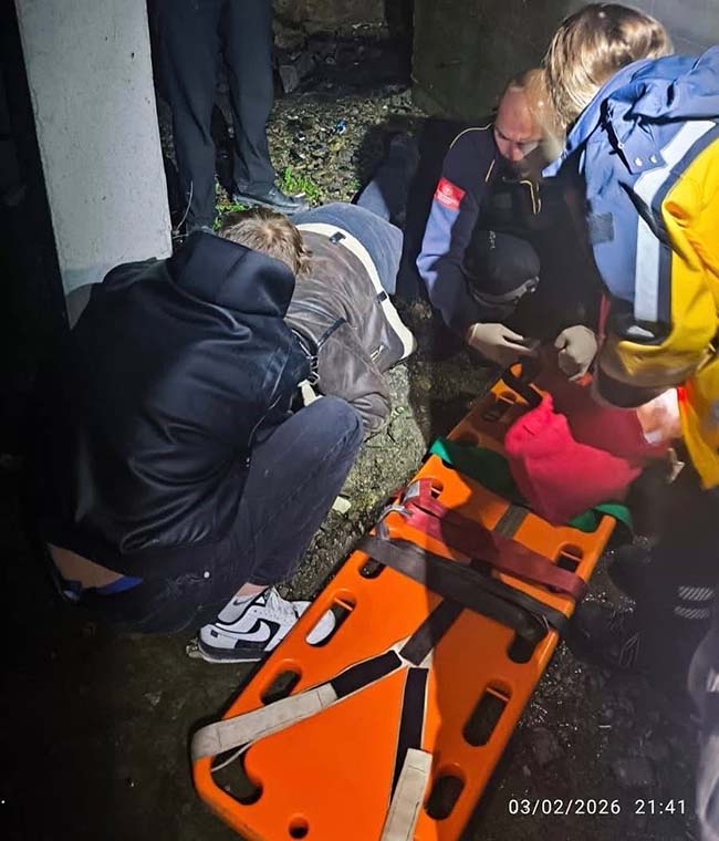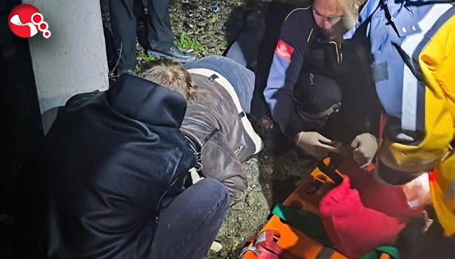 İhbarla adrese sevk edilen itfaiye ekipleri vatandaşı kurtararak sağlık ekiplerine teslim edildi. Sağlık görevlilerinin ilk müdahalesini yaptığı yaralı, ambulansla hastaneye kaldırıldı.