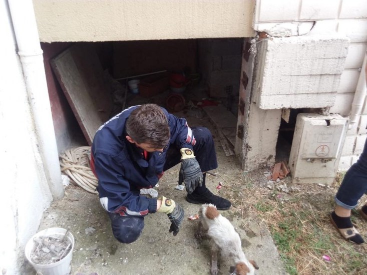 Zonguldak'ın Alaplı ilçe Belediyesi İtfaiye Müdürlüğü ekipleri, asansör boşluğuna sıkışan yavru köpekleri kurtardı. İtfaiye müdürlüğü ekipleri tarafından kurtarılan yavru köpeklere süt ve su verildi.