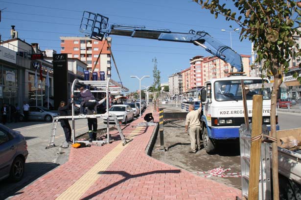 Karadeniz Ereğli Belediyesi'nce Şehit Ömer Halisdemir Bulvarı'nda yapılan çalışmalarda sona yaklaşıldı. Belediye ekipleri asfalt için karayolunun bir şeridini trafiğe kapattı, akıllı durakların montajına başlandı.
