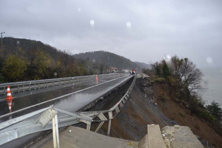 Aşırı yağışlar nedeniyle Alaplı-Akçakoca Karayolu Ölüce mevkisinde yolda çökme ve çatlaklar meydana geldi. Olay yerine gelen trafik ve karayolları ekipleri trafiği tek şeride düşürdü. Sürücüler dikkatli ve yavaş geçmeleeri konusunda uyarıldı.
