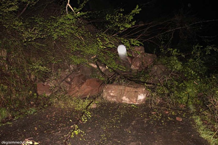 arasına işlemesinden dolayı bir heyelan meydana geldi. Yolumuz kapandı. Sabah
