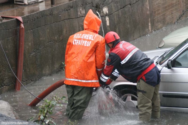 Batı Karadeniz Bölgesini etkisi altına alan gök gürültülü şiddetli yağışlar Kdz. Ereğli'de de bazı olumsuzluklara yol açtı. Yoğun yağışın yol açtığı olumsuzluklardan vatandaşların etkilenmemesi için uyarıları dikkate alan Ereğli Belediyesi İtfaiyesi hazırlıksız yakalanmadı.