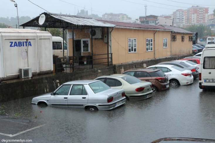 Müftü Mahallesi Çetin Emeç Caddesi Suat Başol Caddesinde otoparkta park halinde bulunan araçlar da aşırı yağışlar ve menfez yetersizliğinden sular altında kaldı.