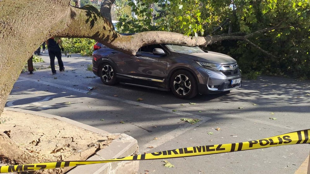 Karadeniz Ereğli ilçesinde yaklaşık 150 yıllık olduğu öğrenilen çınar ağacı park halindeki cipin üzerine devrildi. Cipte bulunan 3 kişi yara almadan kurtuldu.