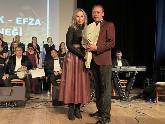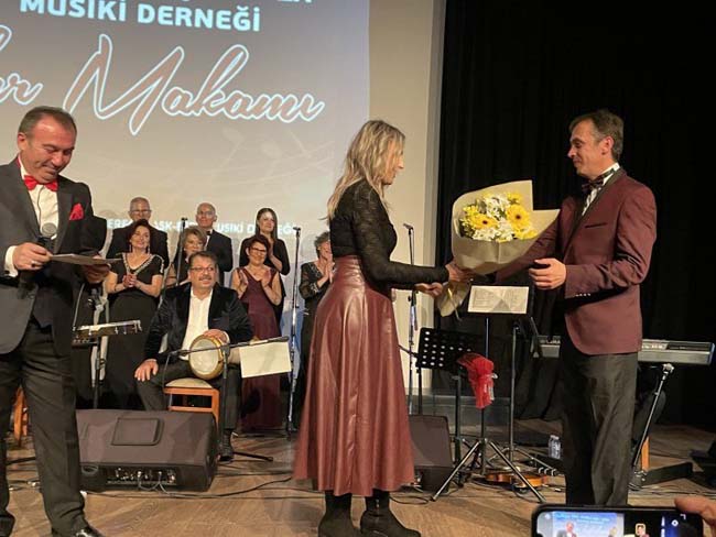“Dalganadım da Durdum” muhayyerkürdi eseri İlyas Sofuoğlu’nun solo sunduğu konserde aynı zamanda Dernek Yönetim Kurulu Başkanı Meryem Enaz ile kardeşi Mustafa Karadeniz Uşşak Makamı eser “Gemim Gidiyor Baştan”ı birlikte söylediler.