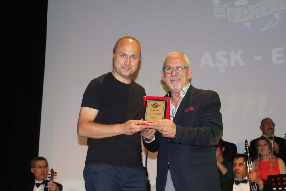 Aşk-Efza Musıki Derneği’nce düzenlen “Akşam Sefası” isimli konserin sonunda, Ereğli Demir ve Çelik Fabrikaları Genel Müdür Yardımcısı Sinan Bozkurt, Şef Kaynar’a çiçek takdim ederken, Zonguldak Bülent Ecevit Üniversitesi Ereğli Eğitim Fakültesi Dekanı Prof. Dr. Soner Yavuz da, derneğin kurucu başkanı ve halen onursal başkanlığını yürüten Cengiz Alpago’ya plaket takdim etti.