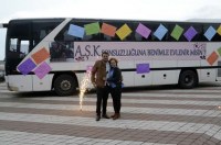 Çift, sürprizin hazırlanmasında destek olan arkadaşlarıyla otobüsün önünde hatıra fotoğrafı çektirmeyi de ihmal etmedi.