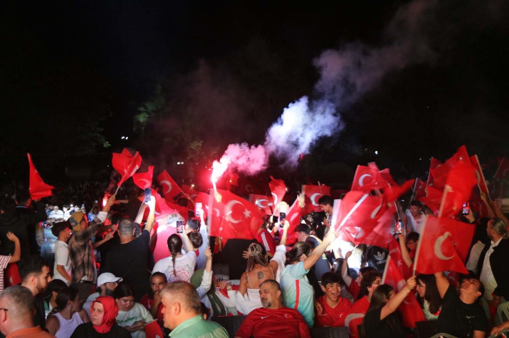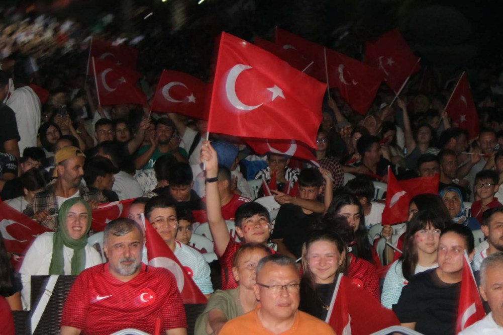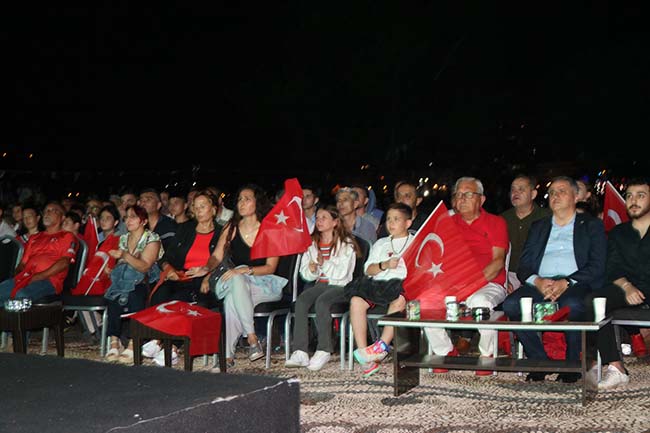 Kdz. Ereğli Belediyesi dün akşam oynanan Türkiye Hollanda Milli Takım maçını sahil bandında süs havuzunda kurulan dev ekranda yayımlayarak heyecana ortak oldu.