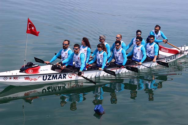 Filyos Limanı'na Türk bayrağıyla giren 15 kişilik dragon bot sporcularını Çaycuma Kaymakamı Serkan Keçeli, Filyos Belediye Başkanı Ömer Ünal, İlçe Milli Eğitim Müdürü İsmail Baş, İlçe Spor Müdürü Şendoğan Kaya, çok sayıda vatandaş katıldı.
